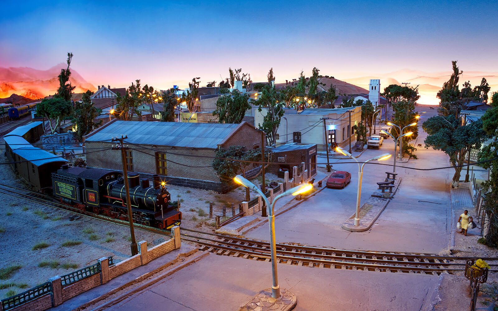 When building Patagonia, some rethinking had to be done, as the narrow-gauge railway La Trochita ("The Little Train") runs there. In the original, the tracks have a track gauge of 750 mm, which corresponds to only 9 mm in 1:87 scale (H0e gauge). All locomotives and wagons for had to be built and painted by hand. The small town of Ingeniero Jacobacci in the Argentine province is the only densely populated settlement in the Patagonia of Wunderland. Despite its modest size, there is a lively community here and you can discover many little stories. From dinosaur excavations to a spaceship crash and many guachos on their own missions, there is a lot to discover.